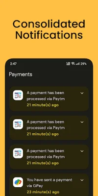 Payment Alerts (UPI Apps) is a mobile application designed to simplify and streamline your financial transactions. With its key features, you can easily monitor your transactions in real-time, generate QR codes for easy payments, and schedule alerts according to your preferences. The app also offers a consolidated view of all your transaction notifications from various sources, ensuring a hassle-free experience.