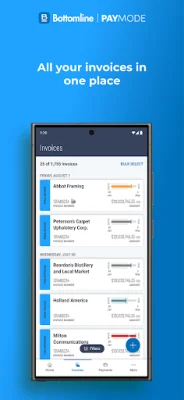 In addition to managing payments, the application also allows users to upload invoices on the go. Invoices can be easily uploaded from email, files, or by using the device's built-in camera. Users can then take action on their invoices, such as approving or rejecting them individually or in bulk. They can also filter invoices by status, vendor name, invoice number, payer company, and more. The application also allows for quick and accurate cost allocation directly within the system.