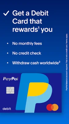 With the PayPal debit card, you can access your PayPal balance and use it to shop anywhere Mastercard is accepted. You can also withdraw cash from ATMs worldwide with no fees at over 37,000 MoneyPass ATMs. No credit check is required, and you can easily transfer funds from your bank balance to your PayPal balance. For more information and terms, visit paypal.com/us/debitcard.