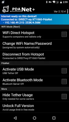 Whether or not a user needs this software depends on their data plan. There are four types of data plans offered by most carriers, and PdaNet+ is useful for plans that do not allow the mobile hotspot feature to be turned on, or for plans that have a limited data cap. The free edition of PdaNet+ has a timed usage limit, but is otherwise the same as the full version. Sprint and AT&T users may need to install the app directly from http://pdanet.co/install or from the computer side, as these carriers may not allow installation from the Play Store.