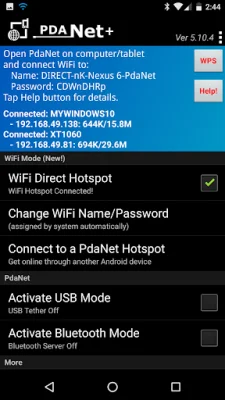 The latest version of PdaNet+ includes a new feature called "WiFi Direct Hotspot" which allows users to connect their computers and tablets to their phone using WiFi. However, this feature requires users to either install a client app or set up a proxy depending on the device they are connecting to. Detailed instructions can be found by activating the feature and tapping the "Help!" button.