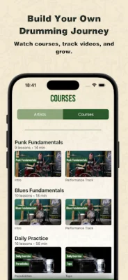 The app is perfect for beginner drummers, self-taught players, drum students, music teachers, practice-focused drummers, and anyone looking for free drum lessons or a reliable drumming app. It offers a variety of key features, including free lessons and courses, practice logging and habit tracking, a built-in precision metronome, artist interviews, exclusive video content, and the ability to save your favorite lessons.