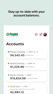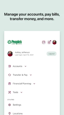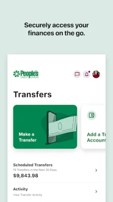 The Recent Activity feature allows users to view up to 16 months of account transactions, providing a comprehensive overview of their financial history. Transfers between accounts at People's Credit Union or other institutions can also be easily made through the app. Users can also schedule and edit bill payments through the Bill Pay feature, making it convenient to manage their bills.