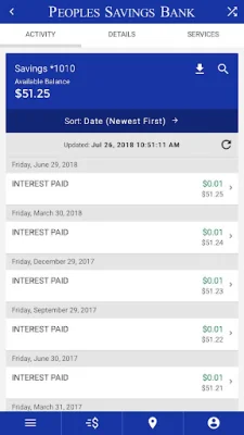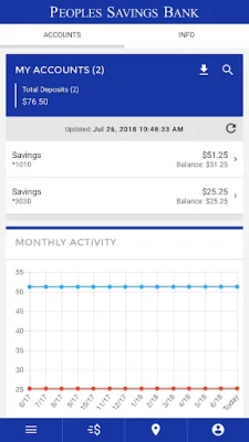 The Peoples Savings Bank mobile app offers a convenient and secure way to manage your banking needs. With this app, you can easily view your accounts, check balances, and view transactions. You can also turn your debit card on or off from your mobile device, making it easy to protect your account from unauthorized use. One touch calling allows you to quickly contact customer service for any questions or concerns you may have. You can also deposit checks, edit account nicknames, and transfer funds between eligible accounts. Plus, the app helps you locate a branch or ATM near you for easy access to your money.