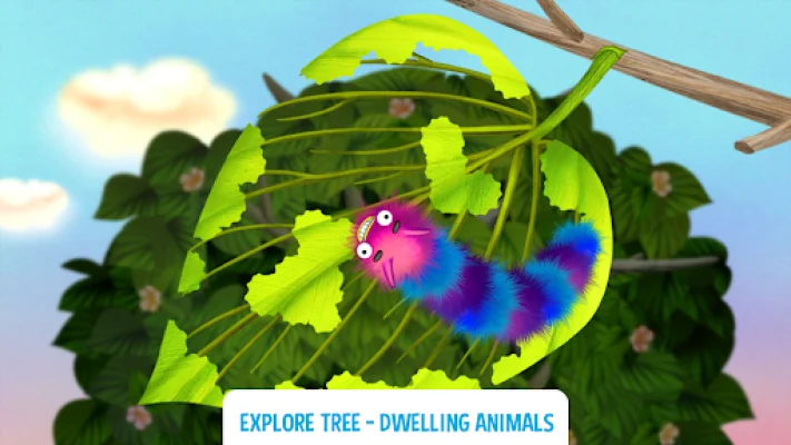 The app is centered around a tree, which serves as a home for all the different animals. Each animal lives on a different floor of the tree and offers six mini games for toddlers to play. As they progress through the levels, children will discover interesting facts about the animals and their habitats. They will learn about what the animals look like, what they eat, how they get their food, where they sleep, and where they live within the tree.