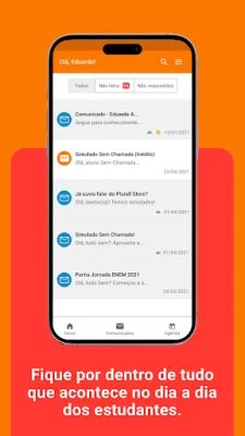 O aplicativo também oferece uma grande comodidade ao permitir que a escola envie as informações diretamente para cada usuário, de acordo com seu perfil e vínculo com os estudantes. Isso garante que cada usuário receba apenas as informações relevantes para ele, evitando sobrecarga de informações e facilitando o acompanhamento da vida escolar.