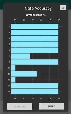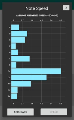 Not only can users practice identifying notes, but they can also track their performance through stats. These stats include accuracy in identifying each note and the time it takes to identify each note.