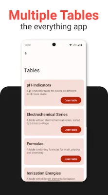 Other useful features include a comprehensive nuclide decay data table, a geology table for identifying minerals, and a constants table for referencing common constants in math, physics, and chemistry. Users can also access an electrochemical series to view electrode potentials and an inbuilt chemistry and physics dictionary to enhance their understanding.