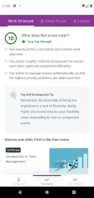 Unlike other online career personality tests, our app goes beyond simply identifying your strengths and weaknesses. We also offer personalized course recommendations to help you upskill for free, as well as explore careers that align with your personality, strengths, and interests.