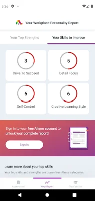 After completing the test, you will receive a preliminary result. To access your full report, all you need to do is create a free Alison account. There are no subscription or sign-up fees – our app is completely free to use.