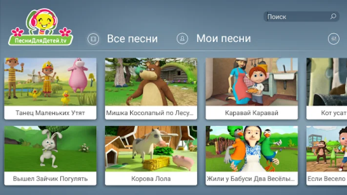 Вы можете бесплатно посмотреть 4 песни, включая "Танец Маленьких Утят", "Вышел Зайчик Погулять", "Мишка Косолапый по Лесу Идет" и "Корова Лола". Однако, подписка открывает доступ к более чем 10 популярным детским песням, таким как "Каравай", "Жили у Бабуси Два Весёлых Гуся", "Кот усатый, озорной" и другим.