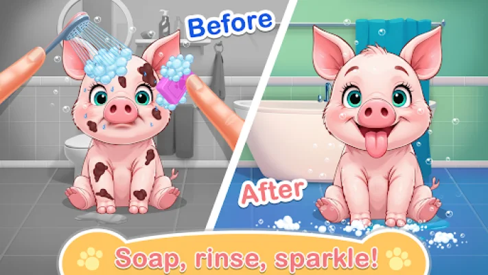 After a trip to the vet, it's time to wash, groom, and pamper your pets. Scrub away the mud, wash with soap, and make them sparkle. Rinse, dry, and brush their fur until they shine. And don't forget to feed them delicious foods and treats to keep their tummies full and their tails wagging.