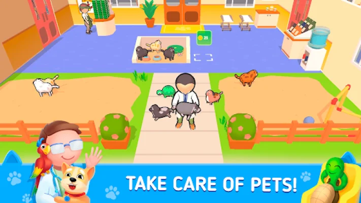 This vet simulator is not just a simple pet game, but a full animal rescue simulator. Players can grow their shelter, hire assistants, and care for virtual animals on a daily basis. It offers a unique and immersive experience for those looking for a relaxing animal game, a pet care simulator, or an offline pet rescue adventure.