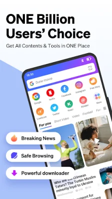 Phoenix Browser is a fast and efficient web browser that offers a variety of features to enhance your browsing experience. With this browser, you can load webpages at a lightning speed, save up to 90% of your data, and browse smoothly even in a slow network. One of its main features is the ability to download all-format videos and social media content quickly and easily.