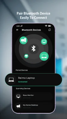 The Get Paired Bluetooth Devices application allows users to easily connect their Bluetooth keyboard and mouse to their phone. If the user does not have any paired devices, they can scan for available devices and then pair them with their phone. Once the devices are paired, the keyboard and mouse will automatically connect to the phone.