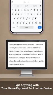 The Bluetooth Keyboard and Mouse features include a function keys keyboard, allowing users to type and transmit text to a connected remote device. Users can also type and transmit numbers to a connected remote device. The app also has a clipboard feature, allowing users to easily copy and paste text. Additionally, the app has a "Speak to Type" feature that uses speech recognition to automatically type what the user says.