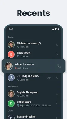 Phone Calls is a user-friendly and efficient app that allows you to easily view your call history. With its clean and organized interface, you can quickly access missed, outgoing, and detailed call information. One of the standout features of this app is its built-in Caller ID, which displays caller information and allows you to respond instantly via call, SMS, or other messaging apps. This After-Call Screen feature also lets you take quick actions such as saving contacts, setting reminders, or blocking unwanted callers. The app offers a variety of useful features, including the ability to block and unblock contacts, view your complete call history, and get detailed insights on each call. You can also use the smart search function to quickly find contacts by name and mark important ones as favorites for easy access. Additionally, the app is lightweight and fast, providing a smooth and lag-free experience. Privacy is a top priority for this app, and it is fully compliant with Google Play policies. The app only accesses call logs for the purpose of providing call management and after-call screen features. Your call data is never stored, shared, or misused without your consent. Some users may wonder why the app requires the READ_CALL_LOG permission. This is necessary for the Caller ID and After-Call Actions feature, which displays recent call details and allows for actions like blocking, quick replies, and messaging. It is also needed for call log management and smart call insights, which highlight frequently contacted numbers for easier access. In conclusion, Phone Calls is a powerful and privacy-focused app that puts you in control of your recent call history. Download it today and enjoy a seamless and secure experience.