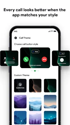 The custom call themes feature allows you to personalize your call screen with custom wallpapers and button styles. You can choose from predefined designs or set your own images to make your calls more unique.