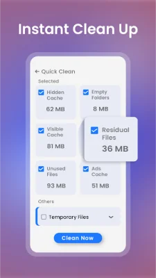 The app uses AI technology to scan the phone's storage and remove unnecessary files instantly. This includes junk files, temporary files, and residual files that may be taking up valuable space on the device. With just one tap, users can easily clear out these files and free up storage space on their phones.