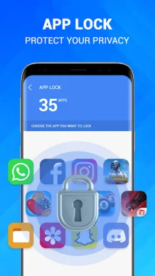 For added security, Phone Cleaner offers an app lock feature that allows you to lock specific apps with a pattern, fingerprint, or passcode. This helps to protect your privacy and prevent unwanted access to your social media apps, gallery, calls, or messages.