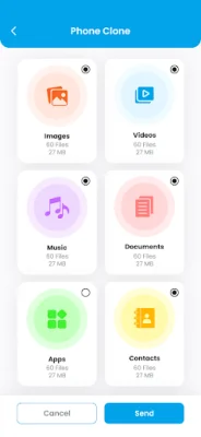 Smart Mobile Switch Phone Clone App is a convenient and efficient way for users to transfer data between phones or share it with others. With this app, you can easily copy all of your data from your old phone to your new one without any data charges. The transfer process is quick and secure, using a personal hotspot WIFI connection and end-to-end encryption to protect your information. One of the key features of this app is its ability to transfer large amounts of data in just a few minutes, without any charges. This makes it a great option for those who need to transfer a lot of data, such as photos, videos, music, and documents, from one device to another. And with the option to choose between different transfer methods, such as Wi-Fi or QR code, users have flexibility in how they want to transfer their data. The Phone Clone feature is especially useful for those who are switching to a new phone. With just a few taps, you can easily copy all of your data, including contacts, messages, and apps, from your old device to your new one. This eliminates the hassle of manually transferring each piece of data and ensures that you don't lose any important information in the process. For those who only want to transfer specific files, the app also offers a file-sharing module. This allows you to select and transfer only the files you need, making the process even more efficient. And with the added benefit of being able to transfer data without an internet connection, this app is a great option for those who may not have access to Wi-Fi or data. Privacy and data security are top priorities for this app. Your information is always safeguarded during the transfer process, giving you peace of mind that your data is protected. And with its user-friendly interface and fast transfer speeds, Smart Mobile Switch Phone Clone App is a must-have for anyone looking to make their data transfer experience hassle-free. So why wait? Download now and start transferring your data with ease!