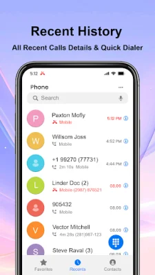 Smart Dialer also offers dual SIM support, allowing you to manage two SIM cards effortlessly without leaving the app. You can choose the right SIM for every call, all in one place. The app also has a call history management feature that allows you to easily access your recent calls and filter between missed, received, and outgoing calls. You can even block spam and unwanted calls, creating custom blocklists or automatically filtering out unknown numbers for a safer calling experience.