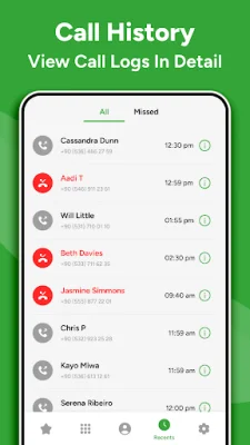 In addition to managing your contacts, the app also offers a comprehensive call log that allows you to view and manage all your call history. You can easily see missed, incoming, and outgoing calls, making it easier to keep track of your communication.