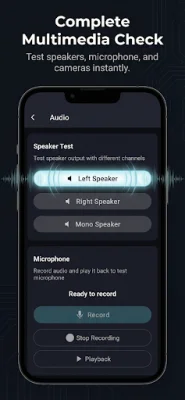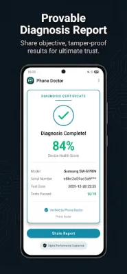 The app offers a one-click diagnosis feature that allows users to test everything from the screen to the battery in just seconds. This makes it easy to get a comprehensive overview of the device's health. The results can also be shared with potential buyers or sellers, providing them with a clear and objective report to ensure a fair price and peace of mind.