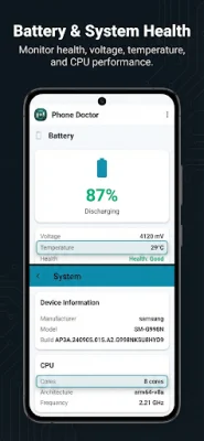 In addition, Phone Doctor helps users keep their phone running longer and faster by monitoring battery health, voltage, temperature, and charging status. It also analyzes storage and RAM usage to free up space. The app also offers network and connectivity tests, including Wi-Fi signal strength and internet stability, as well as multimedia checks for audio and camera functionality.