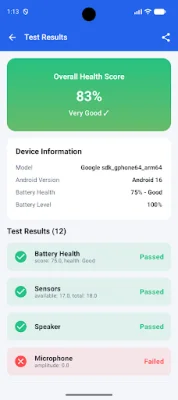 With its clean and modern user interface, accurate results, and detailed reports, Phone Health Pro is the all-in-one solution for phone diagnostics, battery health monitoring, and mobile valuation. And with all diagnostics running locally for complete privacy, you can trust this app to take full control of your Android phone's health. Download now and see for yourself why Phone Health Pro is the top choice for phone diagnostics.