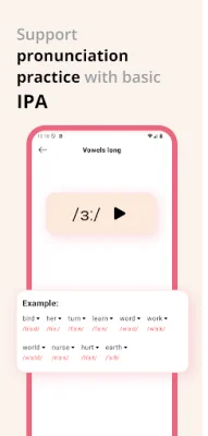 The app offers a range of key features to enhance the learning experience. It supports both British English (BrE) and American English (AmE) and provides a complete IPA chart for easy recognition of phonemes. Users can also access step-by-step guidance for pronunciation training and choose from 13 different voices, including popular American accents, for effective listening and speaking practice. The app also offers an offline mode, allowing users to look up IPA transcriptions and practice pronunciation anytime, anywhere, even without an internet connection. Additionally, users can adjust the reading speed to suit their level of learning and use the instant translation feature to quickly understand the meaning of new words.