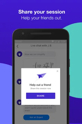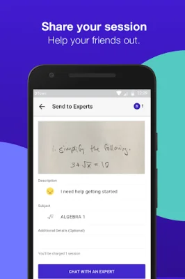 The PhotoStudy app allows students to quickly and easily connect with a Study Expert for help with their math and science homework. By simply taking a picture of their problem, students can be connected to a qualified tutor in just seconds for a personalized 10-minute chat session. If they need more time, they can request an additional 10 minutes for free. The app also allows students to access their chat session history for quick review.