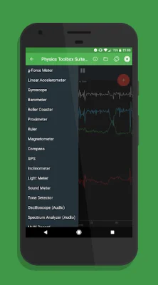This application offers a variety of sensors, generators, and data analysis tools for users to utilize. These tools include kinematics, acoustics, light, magnetism, and other features. The kinematics tools allow users to measure G-force, linear acceleration, radial velocity, and angles. The acoustics tools include a sound meter, tone detector and generator, oscilloscope, spectrum analyzer, and spectrogram. The light tools offer a light meter, color detector and generator, proximeter, stroboscope, and Wi-Fi signal strength. The magnetism tools include a compass, magnetometer, and an augmented reality visualization of magnetic field vectors. Other features include a barometer, ruler, GPS, and system temperature.