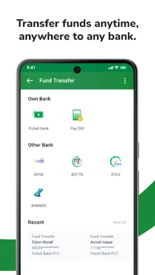 In order to make mobile recharges and fund transfers to MFS possible, the app may ask for optional permission to access the user's contacts list. This allows for a seamless and convenient experience when completing these types of transactions. Additionally, the app may request optional camera permission for tasks such as uploading a profile picture, scanning QR codes for merchant payments, and using the "Cash by QR" feature in card management. These features add an extra layer of convenience and efficiency for users.