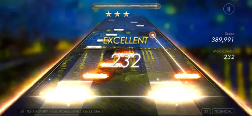 Pianista also offers decorative piano skins that not only add a visual element but also provide score bonuses and extra lives. Users can upgrade their piano and earn more bonuses by playing songs from their favorite composers. New songs are constantly added through the music pack system.
