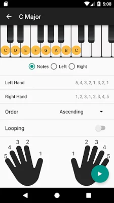 One of the standout features of this app is the ability to hear ascending and descending note playback, as well as see the notes displayed on virtual piano and staff views. This makes it a great tool for studying music theory or preparing for piano exams. Additionally, scale fingerings are available for all scales and are displayed dynamically while the scale is played, making it easier to learn and practice.
