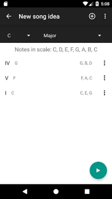 The app also includes a song composer, which allows users to easily layout chord progressions. The composer even has a recommend chord feature based on the selected scale, making it a great tool for finding new ideas for songs or improving existing ones. Simply listening to a key in its different modes can spark inspiration for a melody or riff.