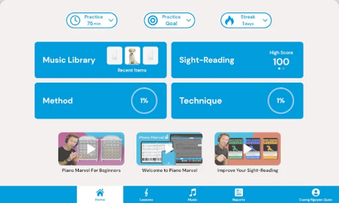 To use Piano Marvel, users simply need to set their device on their keyboard or piano and sign in or create a free account. For MIDI pianos, users can connect via USB or Bluetooth MIDI, while acoustic pianos can use the Book Mode to play along. A Premium Account offers access to additional piano courses, including scales, arpeggios, chords, note recognition, flashcards, and more. The app also regularly updates its music library with new lessons and songs.