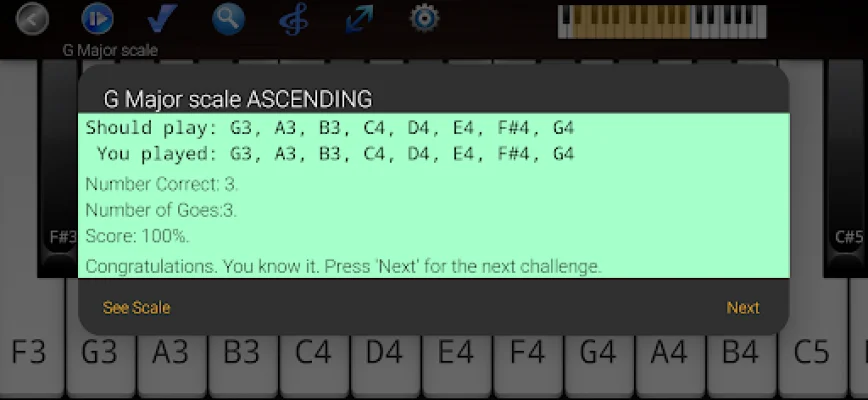 This piano app is designed to help users quickly learn scales, chords, songs, and improvisation in any key. It offers interactive exercises and games to make the learning process more engaging and effective. Users can view scales and chords as a reference or challenge themselves with interactive games. The app also provides finger positioning guidance to ensure proper technique and suggests chord progressions for creating original songs. One of the key features of this app is its highly configurable piano, which includes multitouch, glissando, highlighting, and note names. The resizable keyboard is suitable for all devices and tablets, making it accessible for users of all levels. As users progress through the games, they can track their progress and advance to higher levels. The app can also be used as a simulator or through MIDI or Pitch Detection with a real piano. With over 1000 scales and chords in all keys, this app serves as a comprehensive reference dictionary for beginners, intermediates, and advanced pianists. It even includes jazz chords and extended chords for more advanced players. Users can learn scales and chords by quickly viewing the notes in a key, playing along with the scale, and thoroughly practicing ascending and descending on the piano. The speed of the scale can also be adjusted for a fully personalized learning experience. The app also offers interactive games to test users' knowledge of scales and chords. By playing well, users can earn stars and advance to higher levels. They can also create their own levels by specifying which scales and chords they want to focus on. Additionally, the app provides tools for improvisation, such as backing tracks, a metronome, and the ability to record and save original melodies. Users can even submit their work to be featured in the best user songs game in a future version. For those looking to expand their repertoire, the app offers a section for learning famous melodies and solos. It also has the ability to instantly recognize chords from the notes played by the user. And for those interested in learning essential licks and chord grooves from all genres in all keys, the app provides a useful resource for improvisation. Overall, this piano app is a valuable tool for pianists of all levels looking to improve their skills and expand their musical abilities.
