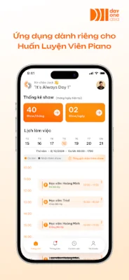 Ngoài ra, Piano Trainer còn cho phép HLV theo dõi lịch dạy chi tiết, bao gồm thông tin về thời gian, địa điểm và học viên của từng buổi dạy trong ngày, tuần hoặc tháng. Điều này giúp HLV chuẩn bị tốt nhất cho buổi dạy và nâng cao chất lượng giảng dạy, đồng thời mang lại trải nghiệm tuyệt vời cho học viên.