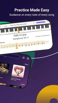 The application breaks down each piece into manageable phrases, organized by hands and simplified into baby steps. This makes it easier and faster for users to learn, as they can listen to prompts to discover the correct notes and finger placements. PianoDodo also offers the flexibility to learn on a phone or a real piano. Users can use the on-screen keyboard on their phone to learn anytime and anywhere, or they can play on a real piano while the app listens to their playing through the device's microphone. This ensures that users hit the right notes at the right time, making the learning process more efficient and effective.