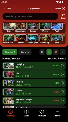 Pickeer is a comprehensive application designed to help players of the popular game Dota 2 improve their gameplay and achieve success. With a clean and user-friendly design, Pickeer offers a variety of features to assist players in making strategic decisions during matches. One of the key features of Pickeer is its matchup statistics, which provide players with valuable information about how different heroes perform against each other. This can help players make informed decisions when choosing their hero for a match. Additionally, Pickeer offers counter and synergy tips, which suggest heroes that are strong against or work well with a chosen hero. For players looking to improve their knowledge and skills with specific heroes, Pickeer offers hero guides and item guides. These guides provide detailed information on each hero's abilities and recommended items, allowing players to better understand and utilize their chosen hero's strengths. Pickeer also includes a list of meta heroes, which are currently popular and strong picks in the game. This can be useful for players who want to stay up-to-date with the current meta and make informed decisions when choosing their hero. To make the app even more personalized, Pickeer allows users to select their favorite heroes and filter heroes by their roles and item categories. This can help players easily find and select heroes that fit their playstyle and preferences. For those looking for even more advanced features, Pickeer offers a premium version. This includes a full hero and item suggestion list, as well as the ability to filter heroes by all roles and positions. Premium users also have access to unlimited favorite heroes and priority support. It's important to note that Pickeer is not affiliated with or endorsed by the game's developer, Valve Corporation. All in-game imagery, hero icons, hero names, and the Dota name are the property of Valve Corporation and are used under fair use guidelines. In conclusion, Pickeer is a valuable tool for Dota 2 players who want to improve their gameplay and achieve success. With its various features and personalized options, Pickeer takes the guesswork out of hero selection and helps players make strategic decisions. Check out the Terms & Conditions for more information and start using Pickeer today to elevate your Dota 2 experience.