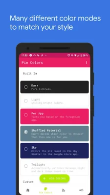 Some of the features of this application include the ability to customize the colors of the "Pie Control" menu, view all of your notifications within the menu, and have multiple menus with different options. You can also adjust the size and placement of the menu, as well as choose from a variety of customization options to personalize your experience. The design of the menu follows the principles of Material Design, making it both modern and user-friendly.