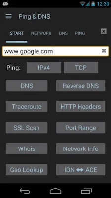 There are numerous options available, such as using an alternative name server, adjusting Ping TTL, showing ping times for each traceroute step, using HTTPS, setting the HTTP port number, and selecting DNS record types to query. The app does not contain any ads, providing a seamless user experience.