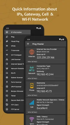 The Ping Master app is a comprehensive network tool that provides users with a variety of useful utilities and information. It is designed to help users manage and troubleshoot their network connections and devices. With this app, users can easily access IP information, network cell info, and WiFi network connection details. They can also perform a ping test to check host reachability, trace the route to a target host, and scan devices connected to their WiFi or hotspots. Additionally, the app offers features such as internet speed testing, FTP client, DNS lookup, and more.