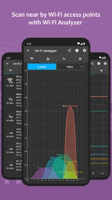 The app also offers tools for troubleshooting network issues. The ping test and traceroute features allow users to check the reachability and trace the route to a target host, respectively. This can help identify any network connectivity problems and assist in resolving them. The LAN scanner and WiFi analyzer features also allow users to scan for connected devices and nearby WiFi networks, providing detailed information and ratings.