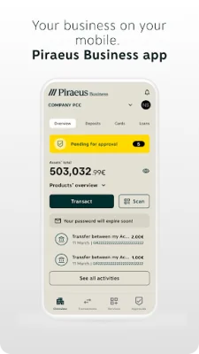 The Piraeus Business app also offers personalized security measures, including quick and easy access through a 4-digit PIN, fingerprint, or facial authentication for compatible devices. Users who do not have Piraeus e-banking credentials can acquire them at any Piraeus Bank branch. For any assistance or inquiries, users can contact the bank through email or phone.
