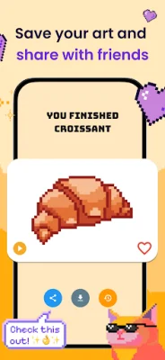 In addition to coloring pre-made artwork, Pixel Buddy also allows you to transform your own photos into pixel art paintings. This adds a personal touch to your creations and allows you to express your creativity in a unique way. You can also share your painting process with friends and family through time-lapse videos, or save your favorite paintings to color at a later time.