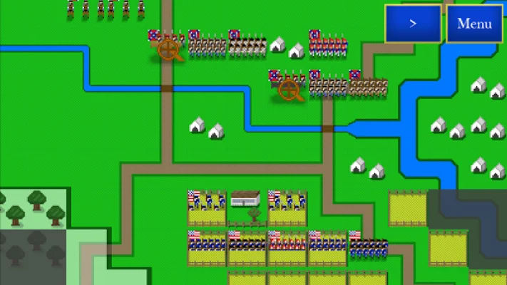 Players must use the terrain to their advantage, such as keeping vulnerable units behind ridges or hiding them in trees. They can also use artillery for long range fire support or risk placing them near the enemy for more effective canister shot. The game also includes rifled and smoothbore cannon. Players must also strategically place their cavalry and infantry units, using skirmishers to delay and disrupt enemy attacks and riflemen for accurate fire support.