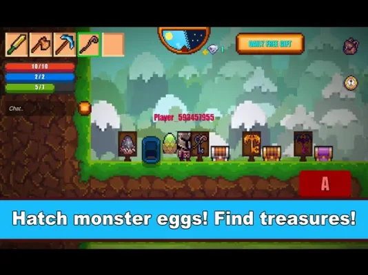 The game features online multiplayer for up to 4 players, the ability to find and hatch monster eggs into pets, over hundreds of items to discover, and the option to craft mysterious items with secret combinations. There are 3 different modes to choose from: Arena, Survival, and Exploration. Players can also craft traps to aid in their survival and face challenging boss fights.